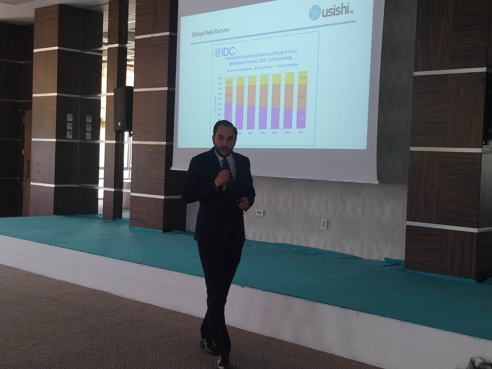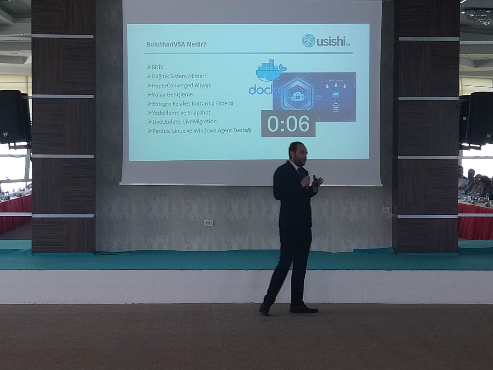 Usishi Bilişim Teknolojileri A.Ş. İş Geliştirme Yöneticisi Ozan Özdemiroğlu, BuluthanSM, BuluthanDS, BuluthanVDI,BuluthanPS veBuluthanVSA ürünlerinin kısaca tanıtımı yaptı. Uzmanlık alanları Veri Depolama, Sanallaştırma ve Bulut Teknolojileri olan firmanın sunumda Sunucu Sanallaştırma, Masa Üstü Sanallaştırma ve Kişisel Veri Depolama ürünleri mercek altına alındı. BuluthanVSA’nın, temel olarak sunucu sanallaştırma, hiper bütünleşik depolama çözümü ve temel seviyede network micro segmentasyon özelliklerinin karşılandığı belirtildi. BuluthanVDI geleneksel uzak masaüstü altyapısı özelliklerinin aksine birçok probleme çözüm sağlandığı ve Geleneksel VDI altyapısının oluşturulması için gerekli olan veri depolama, sanallaştırma ve 3rd Party lisanlamalara ihtiyaç kalmadan, BuluthanVDI ürününün kümülatif bir bakış açısı ile birçok teknoloji çözümünün sağladığının altı çizildi.