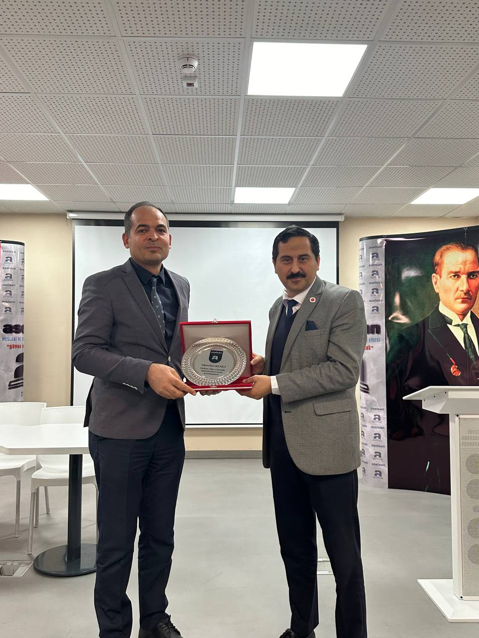 Aselsan Mesleki ve Teknik Anadolu Lisesi Müdürü Yasin Özdemir’in, TSGK Genel Koordinatörü Alpaslan Kesici’ye takdim ettiği teşekkür plaketinin ardından etkinlik hatıra fotoğrafıyla sona erdi.