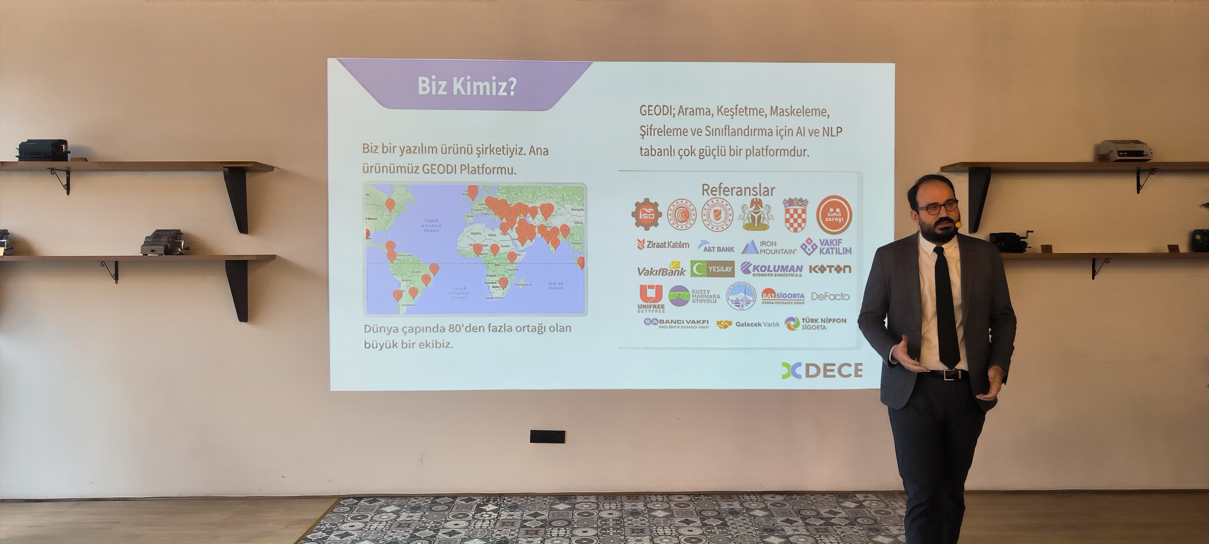 Ardından DECE Yazılım Satış Pazarlama Müdürü İbrahim Çallı, GEODI'nin kurumlardaki veri yönetimi ve koruma problemini çözmeyi hedefleyen semantik keşif, arama, maskeleme ve sınıflama çözümlerini anlattı. Çallı, GEODI ile kurumların verilerini analiz edebileceğini, keşfedebileceğini ve gereğinden fazla tuttukları hassas verileri tespit ederek üzerinde çeşitli aksiyonlar alabileceğini vurguladı. Çallı “Temel olarak sınıflama ile bu içeriklerin gizlilik seviyelerini belirleyebilecekleri gibi tespit edilen içerikleri imha edebilir, maskeleyebilir ve karantinaya alabilirler. Bu şekilde bir insider threat veya istenmeyen bir kayıp olmasına önden engel olabilirler.” diye konuştu. Hassas ve kritik verilerin korunması için başlangıç çözümü olan GEODI'nin kamu kurumlarına sağlayacağı faydaların tamamı sunuldu ve katılımcılara anlatıldı.