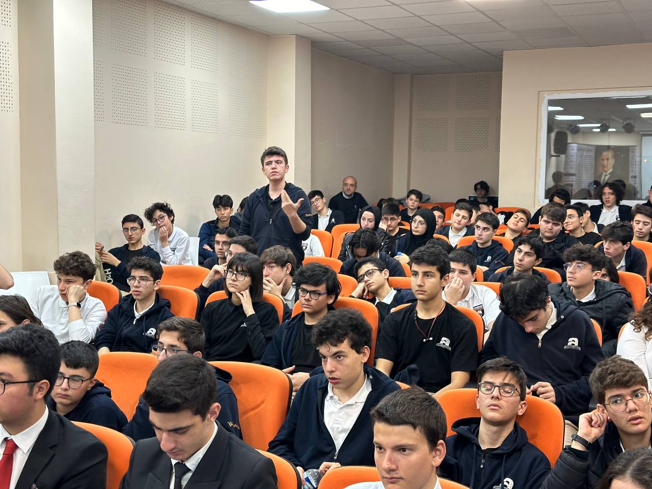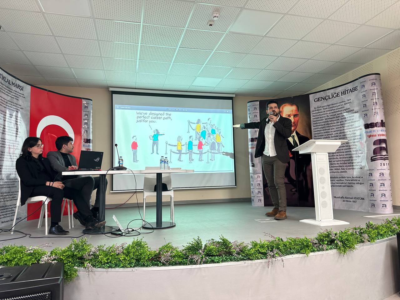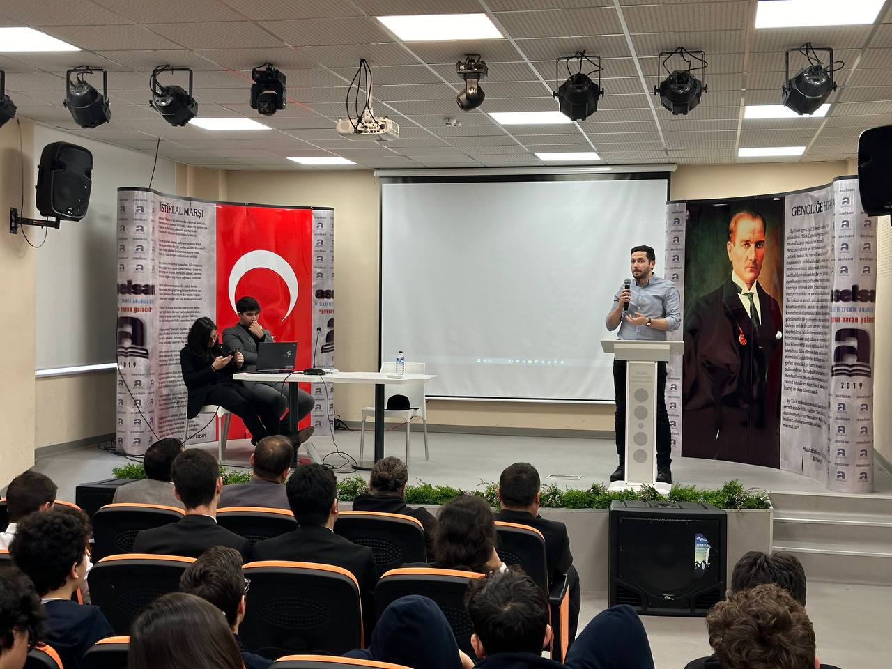 Üye firmalarımızdan Bilishim’in kurucusu ve siber güvenlik uzmanı Yılmaz Değirmenci, sızma testinin ve kırmızı takım mantığını ve neden gerekli olduğunu anlattı. “Hacker”ın ne olduğunu ve ne yaptığını anlatan Değirmenci, güncel örneklere yer vererek, sistemleri hacklemenin nelere mal olduğundan söz etti. Siber güvenlik zafiyetlerinin, büyük bir firmayı bile batırma gücüne sahip olduğunu vurgulayan Değirmenci, siber saldırıların çok güçlü olduğunun altını çizdi. Öğrencilerin, teknik sorularını da cevaplayan Değirmenci ayrıca “Pentest Günlükleri” adlı kitabını okul kütüphanesine hediye etti.