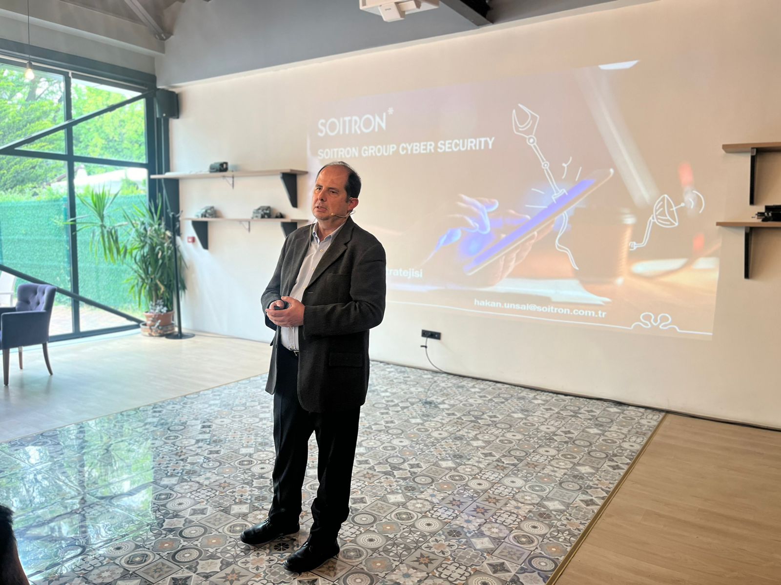 Soitron CTO’su Hakan Ünsal, kurumların siber güvenlik stratejilerini oluşturmada gerekli olan aşamaları ve Soitron olarak hangi aşamada kurumlara nasıl destek olduklarını anlattı. Soitron olarak kurumların ihtiyaçları doğrultusunda bir siber güvenlik yaşam döngüsü ile hizmet verdiklerini; öncelikle danışmanlık vererek bir siber güvenlik stratejisi oluşturduklarını, sonrasında kurulumunu ve satış sonrası desteğini de verdikleri ağ, veri, uç noktası, bulut güvenliği gibi ürünlerinden firmanın ihtiyacı olanları sunduklarını, firmanın ihtiyacı olması durumunda siber güvenlik uzmanları ve yönetim hizmetini de dış kaynak olarak sunduklarını, yaşam döngüsünün son aşamasında da güvenlik operasyonları merkezi (Security Operations Center - SOC) hizmetleri verdiklerini belirtti.